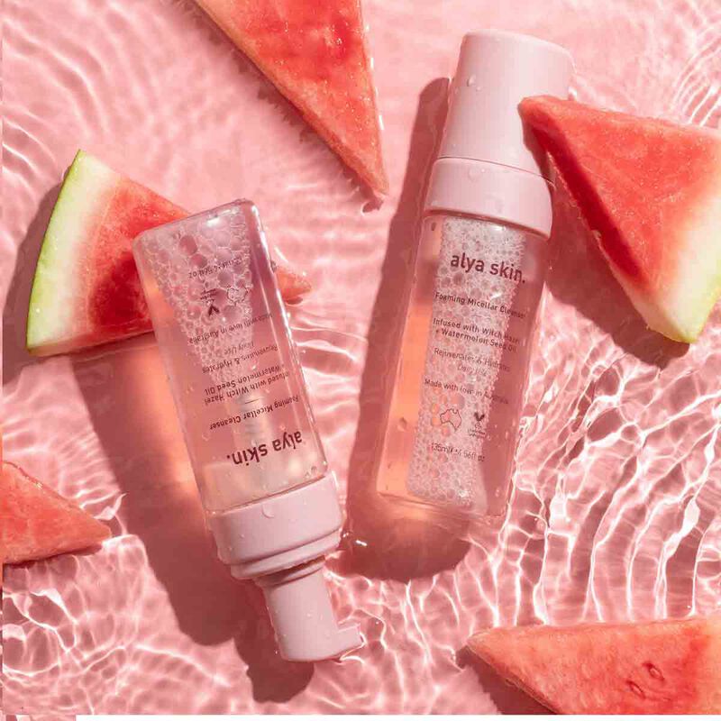 منظف ميسيلار الرغوي عبارة عن تركيبة فريدة مملوءة بزيت بذور البطيخ وزيت الورد الأساسي. تعمل هذه المكونات الرئيسية معًا لتجديد شباب البشرة وترطيبها وتنظيفها. هذا المنظف هو عبارة عن غسول اثنين في واحد ، يزيل المكياج والأوساخ بمسحة واحدة. تقوم الميسيلات بإزالة الشوائب عن طريق تطهير البشرة من الأوساخ التي تختبئ في المسام والدهون الزائدة.