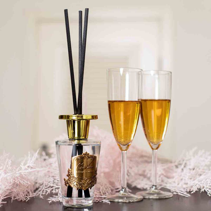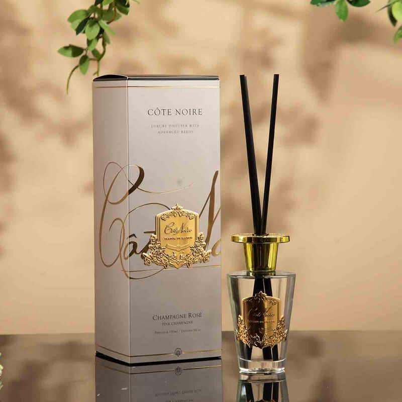 يأتي معطر الجو بزجاج شفاف مزين بشارة كوت نوار الذهبية.