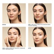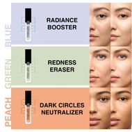 توفر الظلال الثلاثة تغطية قابلة للبناء لأنها توازن وتوحد لون البشرة. يعمل المصحح الأزرق على تفتيح البشرة الباهتة على الفور ويوازن درجات اللون الأصفر ويعزز الإشراق. نصيحة Thom Walker: للحصول على إشراق معزز ، أضيفي بضع قطرات مباشرة في كريم الأساس. يقلل المصحح الأخضر من ظهور الاحمرار وفرط التصبغ والعيوب. يصحح مصحح الخوخي ويخفي العيوب ، والهالات السوداء ، والخطوط الدقيقة ، ويعادل النغمات الباهتة. نصيحة Thom Walker: للحصول على مظهر جديد في كل مكان أو أسفل العينين مباشرة ، أضيفي بضع قطرات مباشرة إلى كريم الأساس أو الكونسيلر