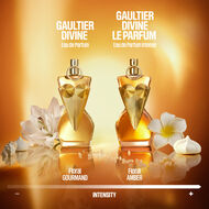 منذ عام 1976، أذهلتنا عروض أزياء ملكات جان بول غوتييه بتفردها وتنوعها في جميع إبداعاتها. رائعون بجرأة وفخورون بلا خوف بكونهم على طبيعتهم. الاحتفاء بجمالهم بكافة أشكاله. يكرّم Gaultier Divine Le Parfum ألوهية الشمس الذهبية والمشرقة في مشدها المخروطي الشهير. وبفضل كثافة زهور العنبر الجديدة، تشع هالتها بشكل لا مثيل له تحت النجم في ذروته. أكثر قوة وأكثر حسية من أي وقت مضى.