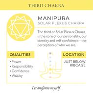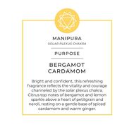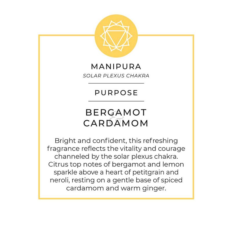 يعكس عطر الشمعة المشرق السعادة والشجاعة التي توفرها شاكرا الضفيرة الشمسية. تتألق المكونات العليا من الحمضيات من البرغموت والليمون فوق قلب من البيتيتغرين وزهر البرتقال وتستريح على قاعدة لطيفة من الهيل المتبل والزنجبيل الدافئ.