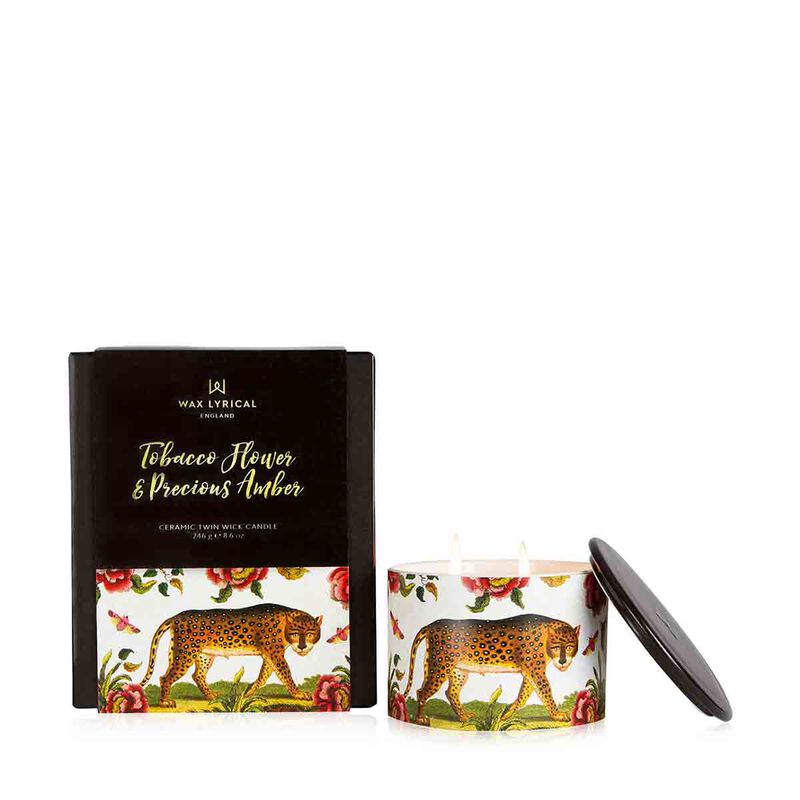 تتميز الشمعة المتواجدة في السيراميك الرائع هذه بطبعة الفهد الغريبة، مما يضفي مزيداً من الإثارة والجمال على المنزل. كما يتم تقديمها في عبوة سوداء أنيقة ورائعة.