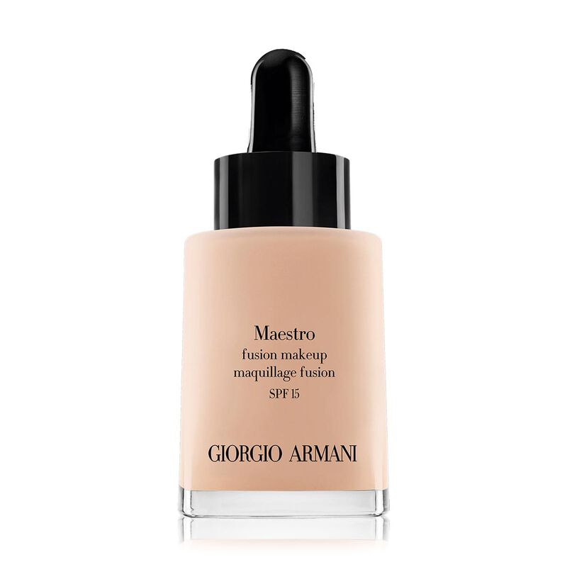 Brighten your complexion with a refining liquid foundation that leaves behind naturally glowing skin. Awarded the Prix d’Excellence de laBeauté Marie Claire , whose key criteria is innovation, Maestro liquid foundation is the revolutionary new makeup formula created by patented Fusion Technology. From textiles to cosmetics: a no makeup feel texture inspired by Super Organza. Unveiled in 2012 at the Spring/Summer Haute Couture show, this is the thinnest fabric in the world.Maestro is not just a matte foundation, and more than a skin perfector, because it concentrates both their benefits:- Waterfree oils: 60% time-release translucent, non-greasy oils for a fresh feel, a non-greasy finish and a pure color.- 11% pigments for a perfect complexion. There's no powder, so no mask effect.- Low surface tension for the fastest, easiest application.- Extras:Skin surface perfection due to soft particles that provide the thinnest correcting film and an extraordinary sensory feel.Contains lotus oil, known for its anti-free radical properties. HOW TO APPLY:With the dropper, dispense a drop on the back of your hand and apply with fingertips. Repeat application, based on your coverage need. Backstage tip:Use it on no-make up days or for the most natural makeup finish and wear with Fluid Sheer for the Armani Glow.
