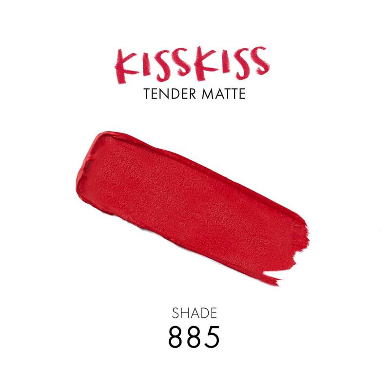 Guerlain reveals all the tenderness of matte with KissKiss Tender Matte, the luminous matte lipstick as tender as a kiss. At the heart of the formula, a trio of active ingredients: hyaluronic acid, shea butter and rose petal extract, to nourish and flawlessly shape the lips with no compromise on comfort for 16H*.A second-skin texture for a light, bare-lip sensation like no other. The secret? Mattifying powders coated in shea butter to sensually glide over lips and bathe them in luminous matte colour that lasts 12H**. Say goodbye to that tight, dry sensation and give your lips the ultimate comfort of this tender matte. For lips that beg to be kissed…*Self-assessment by 20 women **Instrumental test on 20 women
