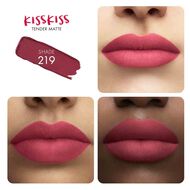 Guerlain reveals all the tenderness of matte with KissKiss Tender Matte, the luminous matte lipstick as tender as a kiss. At the heart of the formula, a trio of active ingredients: hyaluronic acid, shea butter and rose petal extract, to nourish and flawlessly shape the lips with no compromise on comfort for 16H*.A second-skin texture for a light, bare-lip sensation like no other. The secret? Mattifying powders coated in shea butter to sensually glide over lips and bathe them in luminous matte colour that lasts 12H**. Say goodbye to that tight, dry sensation and give your lips the ultimate comfort of this tender matte. For lips that beg to be kissed…*Self-assessment by 20 women **Instrumental test on 20 women