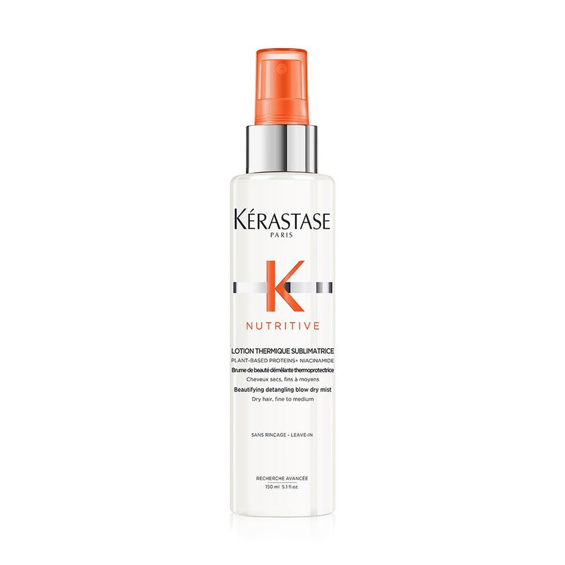 Lotion Thermique Sublimatrice by Kérastase is a beautifying detangling blow-dry mist for dry fine to medium hair. This hair mist for dry hair contains nourishing lipids to intensely condition hair and reinforce the hair fiber, and essential nutrients that boost the formula’s ability to nourish and reinforce the hair.The light milky leave-in essence revitalizes the inner part of the hair by moisturizing the hair fiber, providing more repair, elasticity, and nutrition, and is a 230°C thermal protector.'+82% immediate hydration*Bottle made of 95% recycled plastic.*Instrumental test results immediately after application of Lotion Thermique Sublimatrice