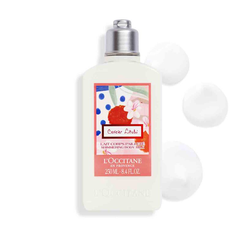 Inspired by Provençal artists, "Cerisier Litchi" is a fragrance as pretty as a picture that illustrates an imaginary encounter between cherry blossom and lychee. This floral and fruity fragrance opens up on an explosion of sparkling citrus fruits, enriched with a colorful floral fruity addiction carried by lychee and cherry blossom, and wrapped in the tenderness of soft musky notes. This body milk helps to nourish and moisturizes the skin. It leaves behind an iridescent veil and a floral and fruity fragrance illustrating the imaginary encounter between cherry blossom and lychee: sparkling citrus fruits, colorful and fruity, soft musky notes. Contains a natural infusion of lychee and natural extracts of cherry blossoms and cherries from the Luberon region.REDUCING WASTE: 30% recycled plastic and recyclable bottle.* *Depending on local recycling capabilities.