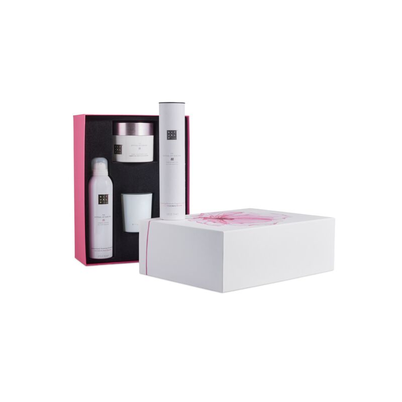 This gift set contains: 1 X The Ritual of Sakura Foaming Shower Gel 200ml, 1 X The Ritual of Sakura Mini Reed Diffuser 70ml, 1 X The Ritual of Sakura Scented Candle 140g , 1 X The Ritual of Sakura Body Cream 200ml