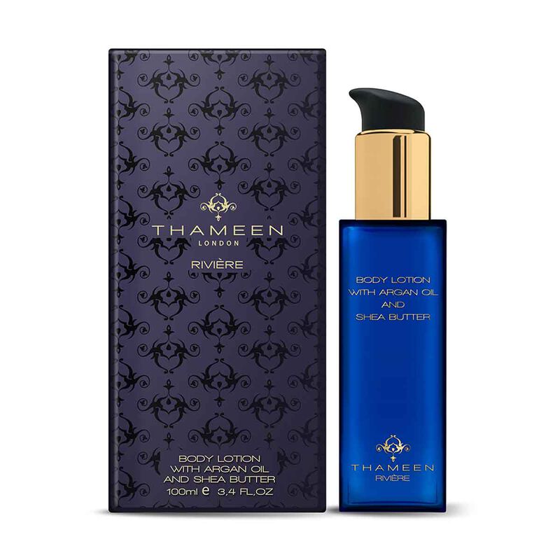 Enjoy a softly scented skin with an all-over healthy glow thanks to Riviere body lotion. This lotion is enriched with the finest grade argan oil and the moisturizing benefits of shea butter. It is an elegant combination of nourishing ingredients wrapped in a delicate embrace of pure, luxury fragrance. Rivière shimmers at the top with Indian black pepper and Persian saffron, moving into deep heart notes of rose, and warmed by a base of amber and leather.